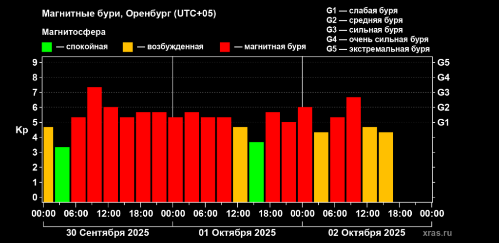 Геомагнитные колебания начались утром 30 сентября и не прекращаются уже более 50 часов. Буря стала самой долгой с начала 2025 года.