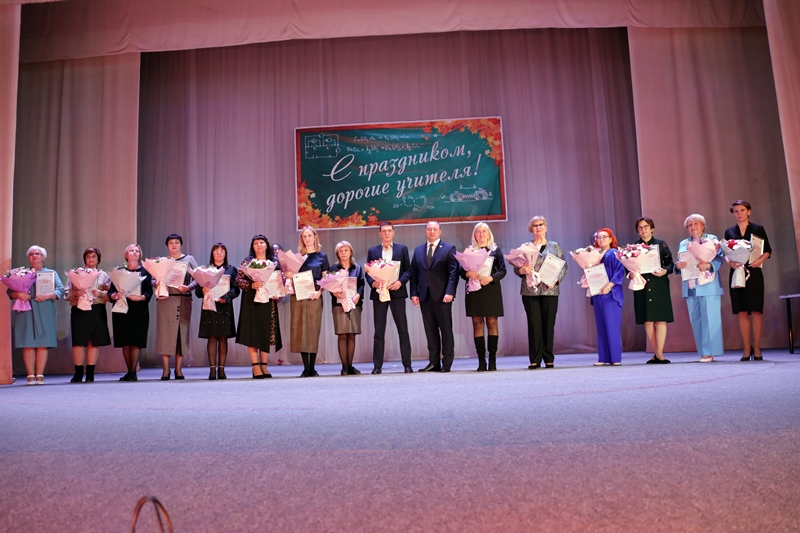 На праздничном мероприятии, посвященном Дню учителя, в Молодёжном центре металлурги поздравили и вручили благодарственные письма Уральской Стали директорам и педагогам школ города, которые внесли весомый вклад в комплектование базовых учебных заведений комбината.