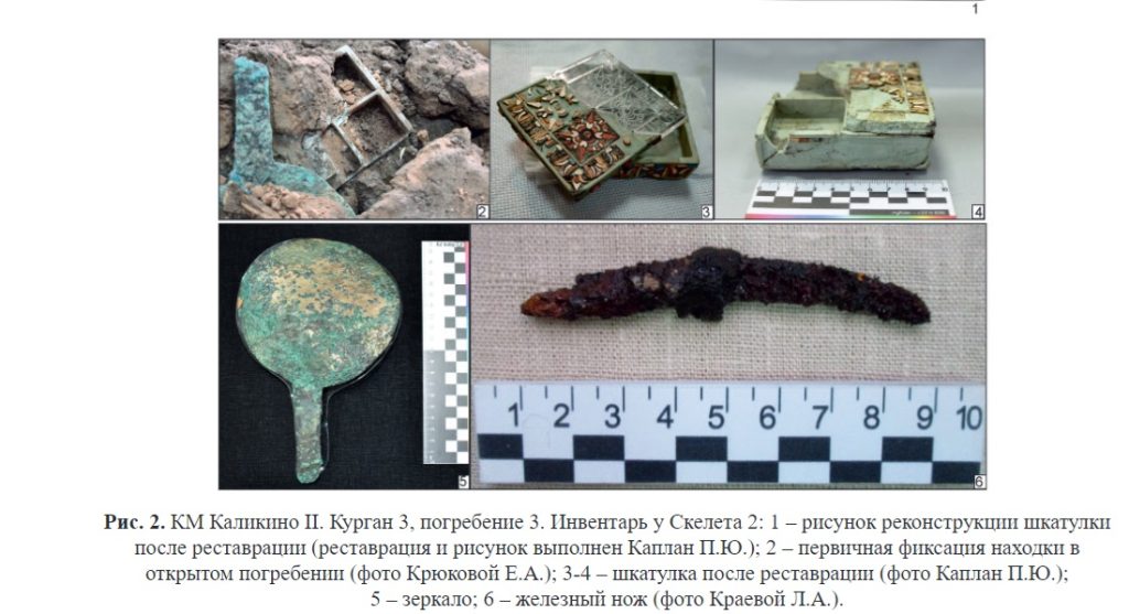 Необычный артефакт был найден в крупнейшем кургане могильника у села Каликино, состоявшего из двадцати погребений раннего железного века. Курган «со шкатулкой» был самым крупным из них.