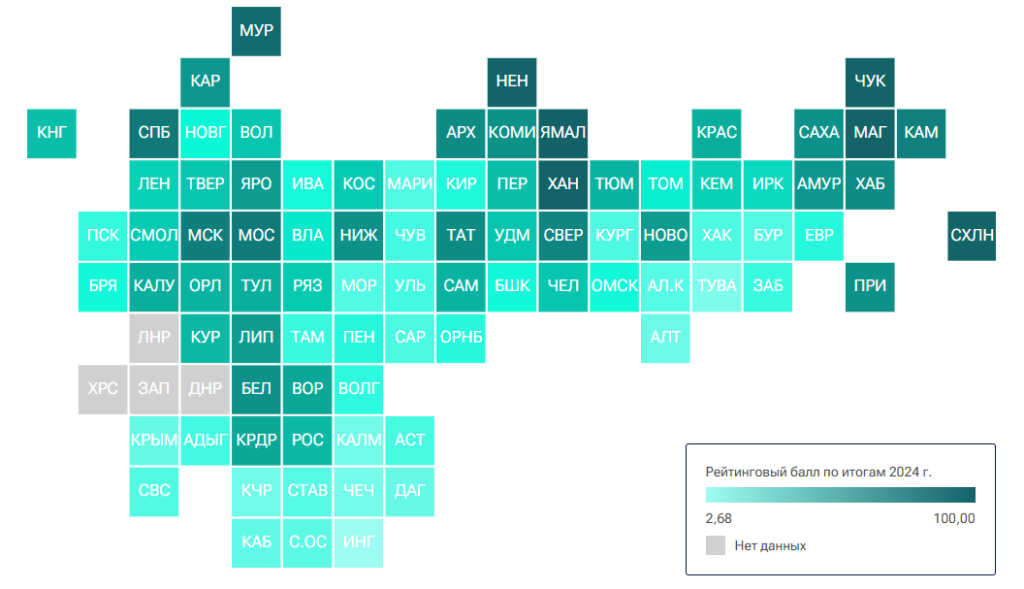 По данным экспертов, почти во всех регионах России наблюдается положительная динамика. Это говорит об улучшении показателей. Рейтинговый балл по сравнению с 2023 годом снизился только на Чукотке и в Москве — там снизился уровень доступности жилья.