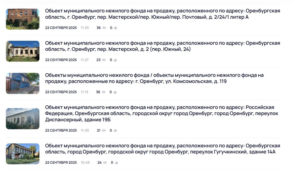На сайте администрации Оренбурга опубликован каталог городской недвижимости для аренды и покупки. Мэрия впервые публично представила полный список городского имущества, который муниципалитет готов продать.
