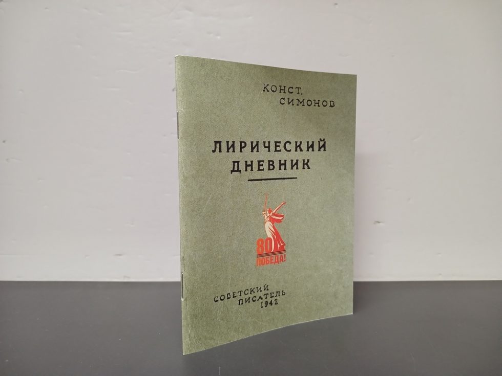 Книжечка, скорее даже брошюрка на двух скрепках, форматом нагрудного кармана гимнастерки, стала в годы Великой Отечественной талисманом для бойцов, уходивших на фронт. В ней легендарное симоновское стихотворение «Жди меня, и я вернусь…» напечатано еще с другим заголовком «С тобой и без тебя» и с посвящением «В.С.» – жене поэта Валентине Серовой.