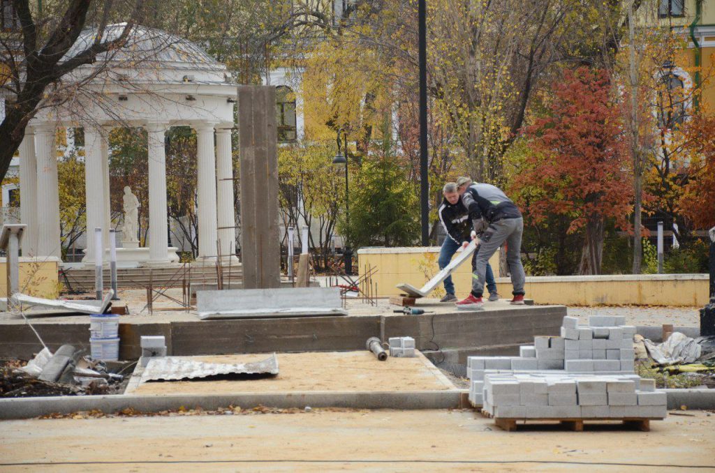 Каждый день на объекте трудятся более 30 специалистов и несколько единиц техники. Готовность работ составляет 70%. Уже выложена плитка, обустроено уличное освещение. Завершится благоустройство сквера установкой фонтана диаметром восемь метров.