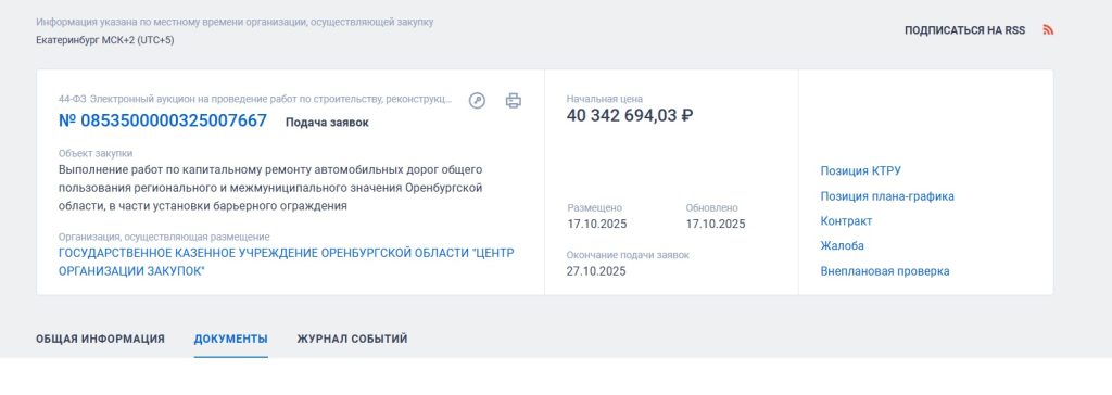 Главное управление дорожного хозяйства Оренбургской области опубликовало закупку на капремонт дорог регионального и межмуниципального значения Оренбургской области, в части установки барьерного ограждения. Они предназначены для предотвращения съезда автомобилей с проезжей части.