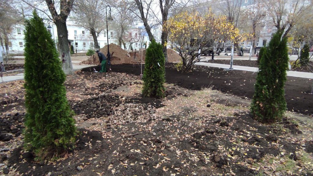 Главная > Новости > Робиния, туя и скумпия. Сквер имени Ленина посадили деревья