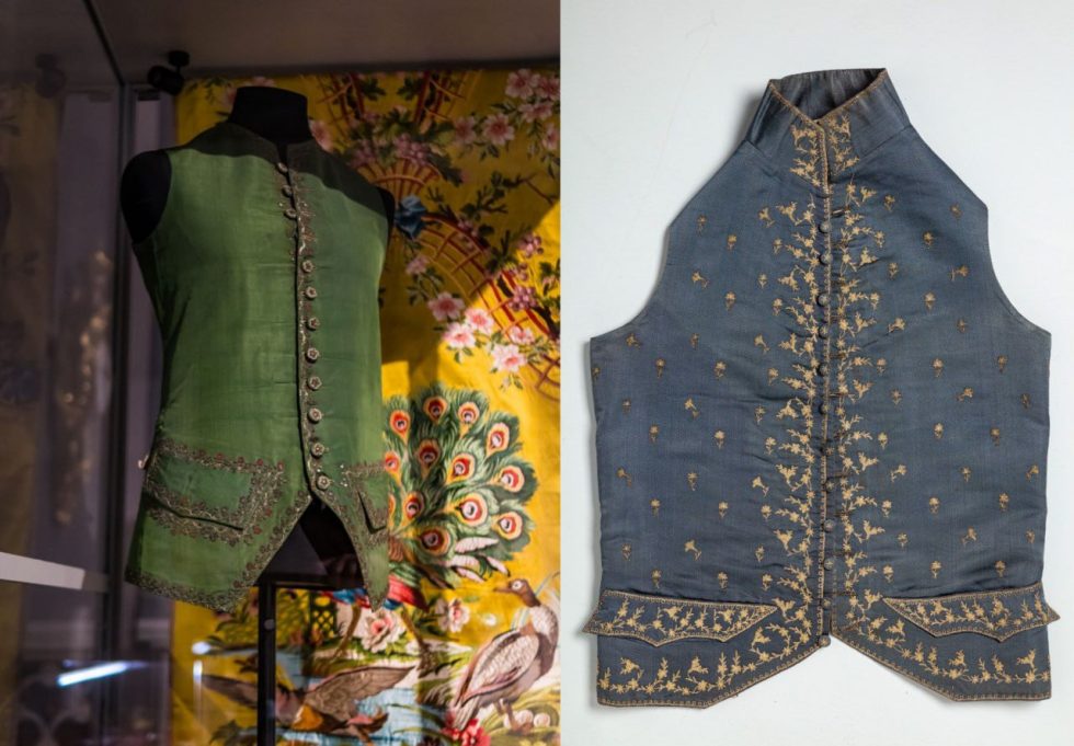 Эти два почти одинаковых жилета — живая иллюстрация того, как роскошь выходила за пределы дворцов. В XVIII столетии мишура и блестки стали народной альтернативой драгоценным камням. Благодаря им эффект нарядности стал доступен не только аристократии, но и состоятельным горожанам.