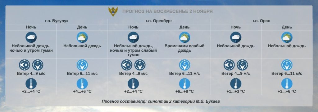 Так, днем 2 ноября в Оренбуржье будет облачно с прояснениями. В большинстве районов пройдет небольшой дождь. В восточных районах ожидаются умеренные осадки.