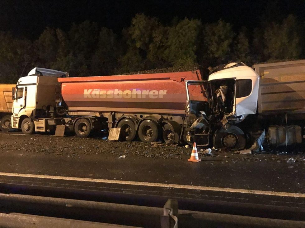Как выяснили прибывшие на месте аварии сотрудники полиции, 57-летний водитель за рулем Scania не справился с управлением и въехал в стоящий на краю проезжей части справа по ходу движения КамАЗ. От удара грузовик отбросило на стоящий перед ним такой же автомобиль. Все автомобили были груженные.