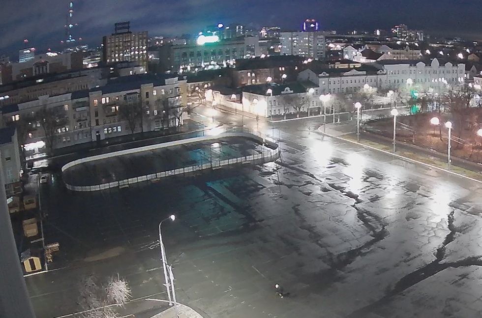 Судя по изображению с камеры видеонаблюдения, на традиционном месте ледового корта появились элементы ограждения – борты. Других монтажных работ на площади не замечено.