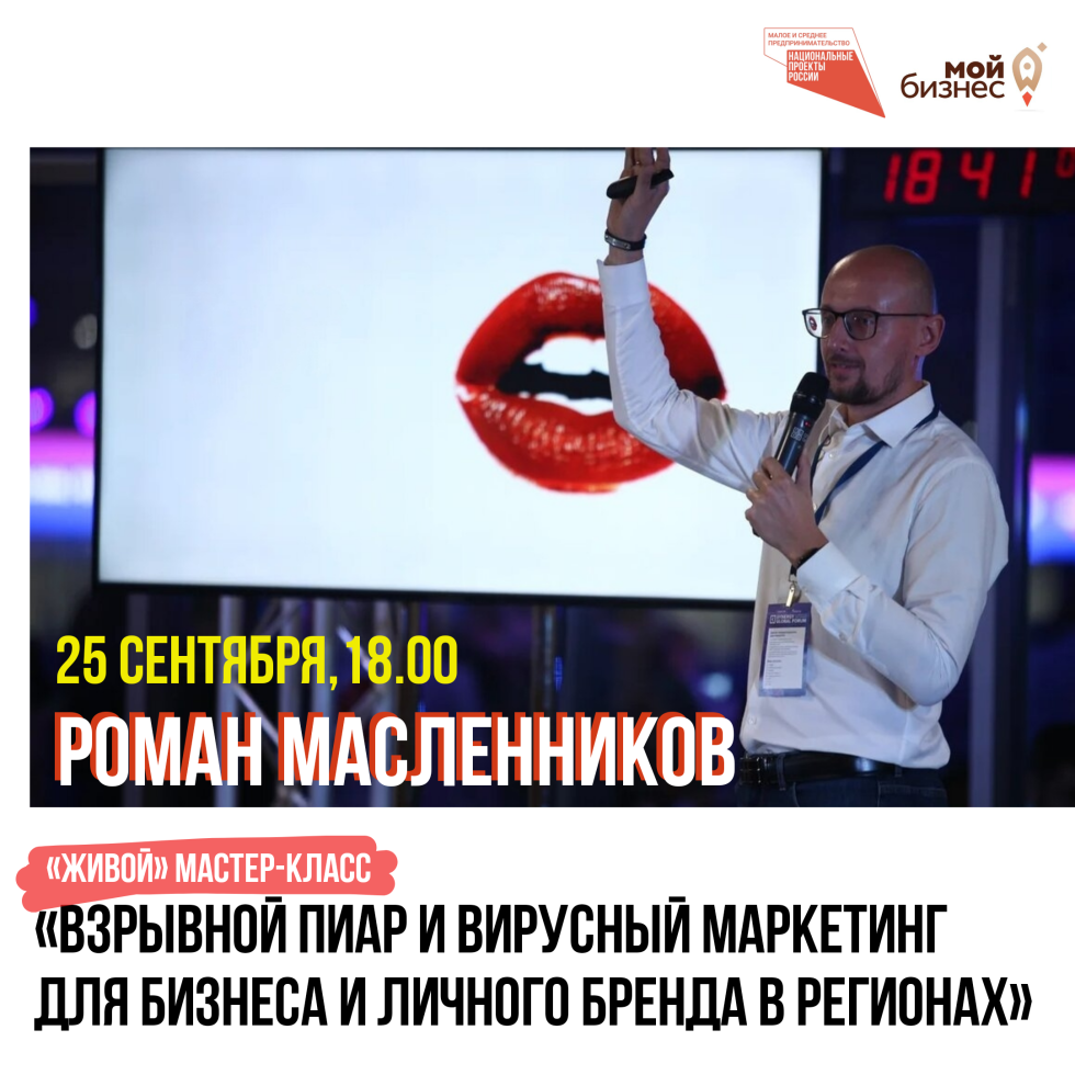 О ведении бизнеса и продвижении собственного дела оренбургским предпринимателям расскажет директор агентства «Взрывной PR», кандидат философских наук и автор более чем 100 книг по теме рекламы Роман Масленников. 25 сентября в 18.00 в Центре «Мой бизнес» он проведет мастер-класс по PR.