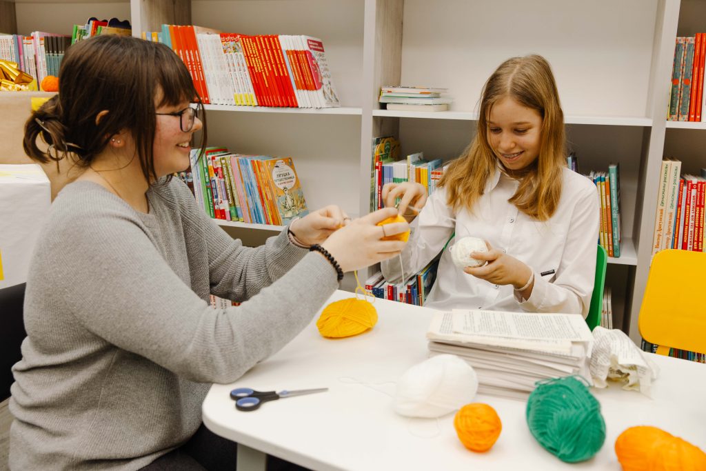 Под руководством волонтеров с большой любовью каждый из участников создавал свой – неповторимый и уникальный – теплый шар из шерстяных ниток. Желтые, зеленые, оранжевые, белые — разных размеров и цветов — шары заняли свое место на общей волшебной елке.
