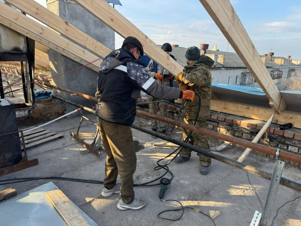 Сейчас рабочие завершают замену магистрали центрального отопления. На следующей неделе ожидается завоз материала для кровли.