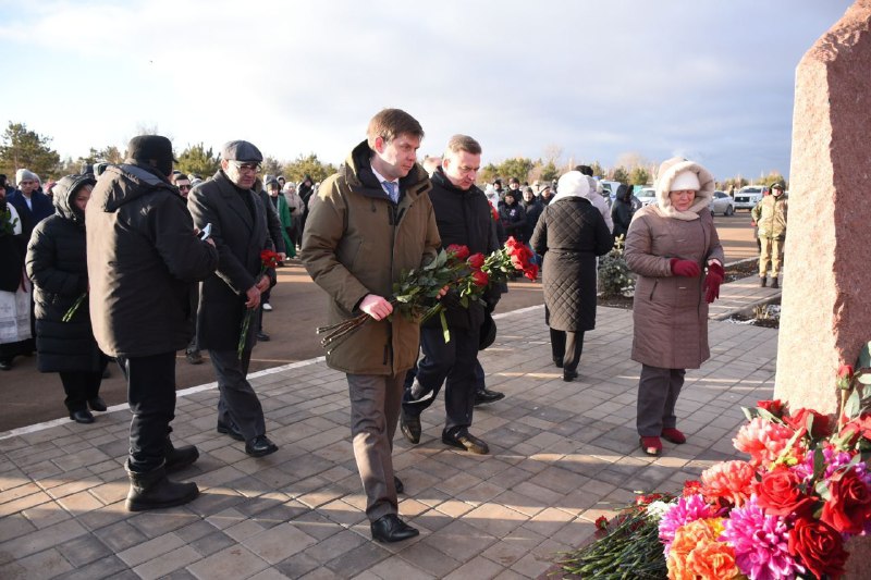 Участники открытия почтили память погибших минутой молчания и возложили цветы к мемориалу.