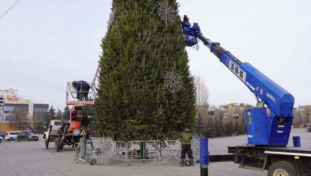 В Оренбурге завершается установка центральной новогодней елки в Южном округе, сообщили в пресс-службе администрации города.