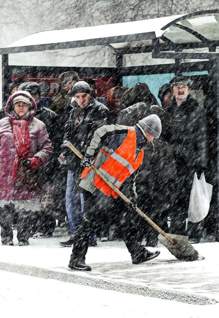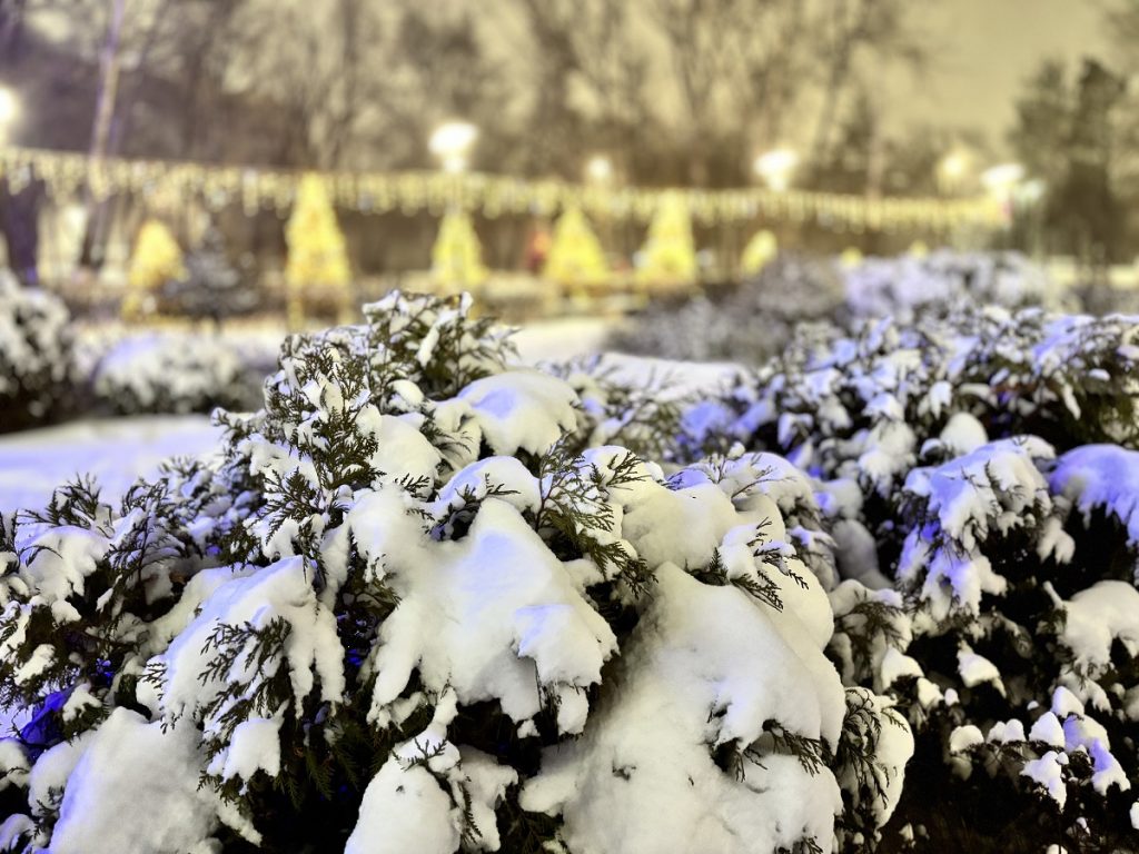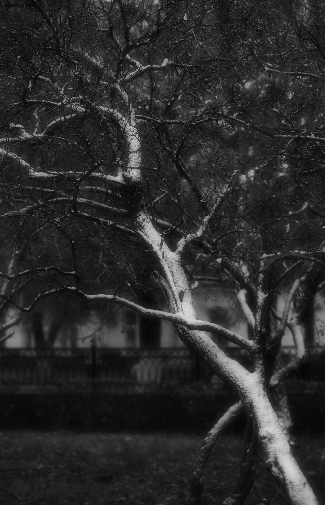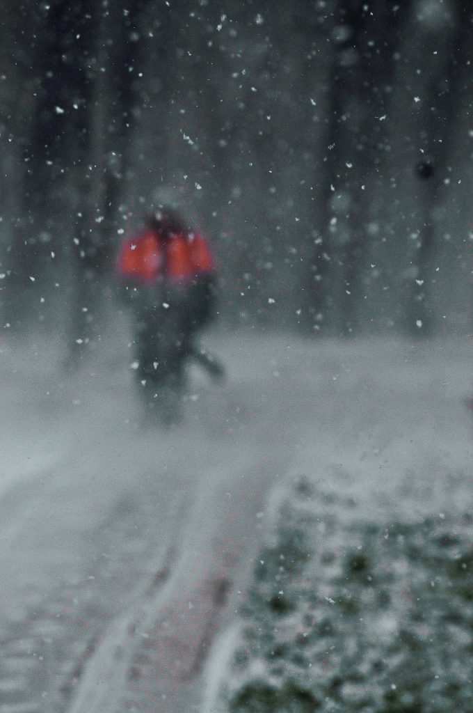 Дети во дворах лепят снеговиков, ловят снежинки языком, разинув рты. Деревья прогнулись под тяжестью покрывал, лишь редкие яблоки и рябины краснеют сквозь белое. Я смотрю на красивые девичьи глаза — единственное, что видно из-под шарфа со снежинками на длинных ресницах. Это так изысканно просто, что нельзя не сфотографировать. Прохожие превращаются в неясные силуэты, и неясно, что летит на свет старого фонаря — то ли снег, то ли звёзды, то ли призраки из прошлого, воспоминания, сказки. Снимать в такую погоду сложно, но очень приятно.