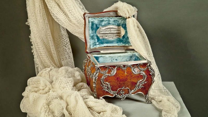 Платок-прототип был преподнесен женой оренбургского губернатора Екатериной Ершовой и хранился в лареце Фаберже.