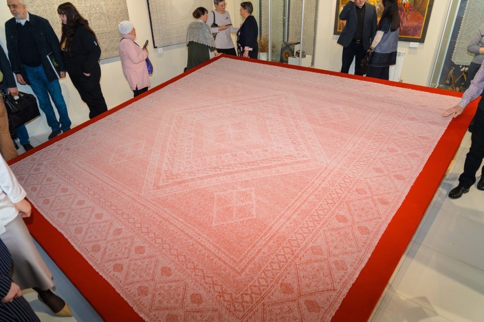 Именно этот исторический артефакт, выставленный в Оренбурге в 2021 году, вдохновил компанию на повторение ручной техники конца XIX века. Работу над современной версией, представляющей собой полотно размером 3,5 на 3,5 метра, в течение двух лет вела опытная мастерица Таслима Нигматуллина. На создание уникального орнамента ушло около 2 миллионов ручных петель.