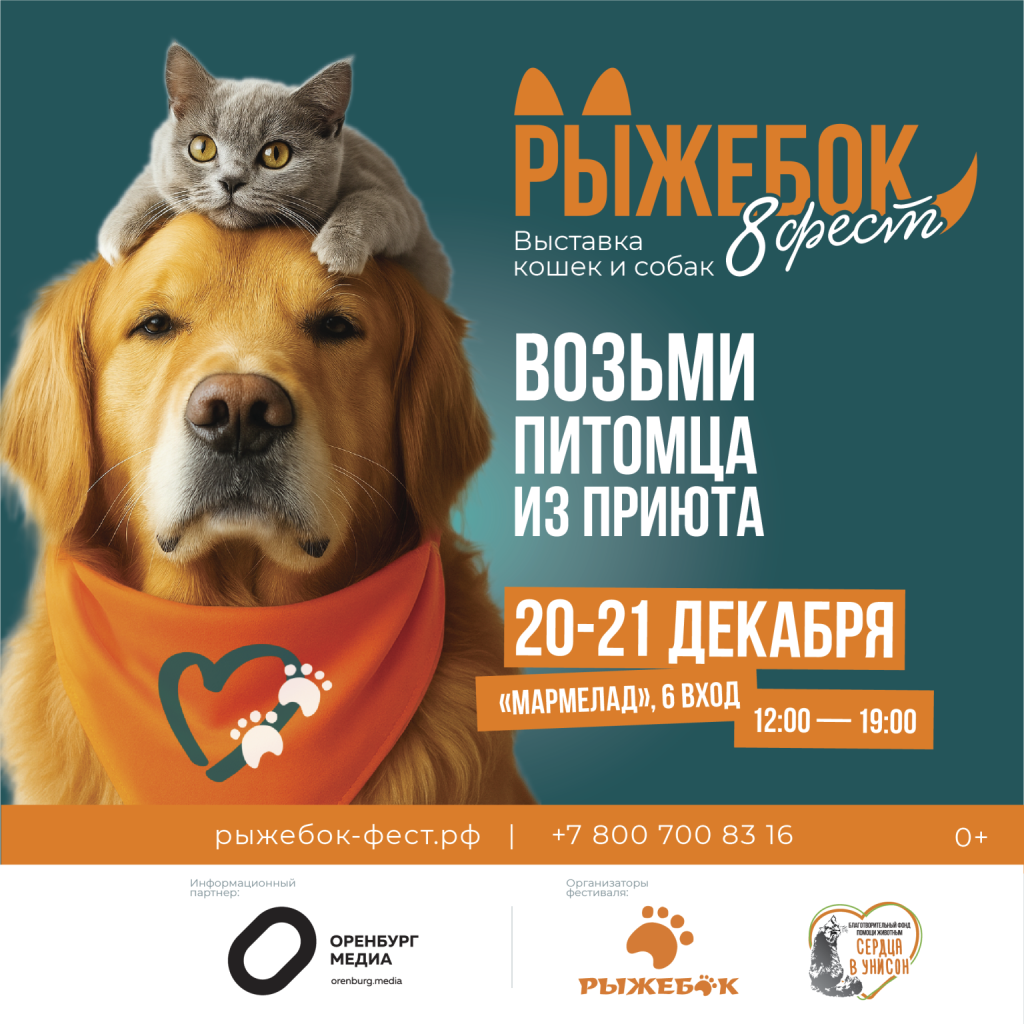 Оренбуржцы получат шанс подарить дом хвостатым питомцам с приютов на РыжебокФесте —фестивале бездомных животных, который пройдет 20–21 декабря в ТРЦ «Мармелад».