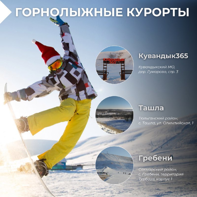 Зимой Оренбуржье становится центром активного отдыха. Одним из главных направлений традиционно остается горнолыжный комплекс «Кувандык365», где уже работает подъемник «Черепашка». Основной склон планируют открыть в ближайшие дни. В этот же период начинает работу спортивно-восстановительный центр «Ташла» и состоится технический запуск комплекса «Гребени». Любители лыж смогут выбрать маршруты «Качкарский», «Зауральная роща» и «Экстрим-парк». На Оренбург Медиа опубликована большая статья о работе горнолыжных баз.