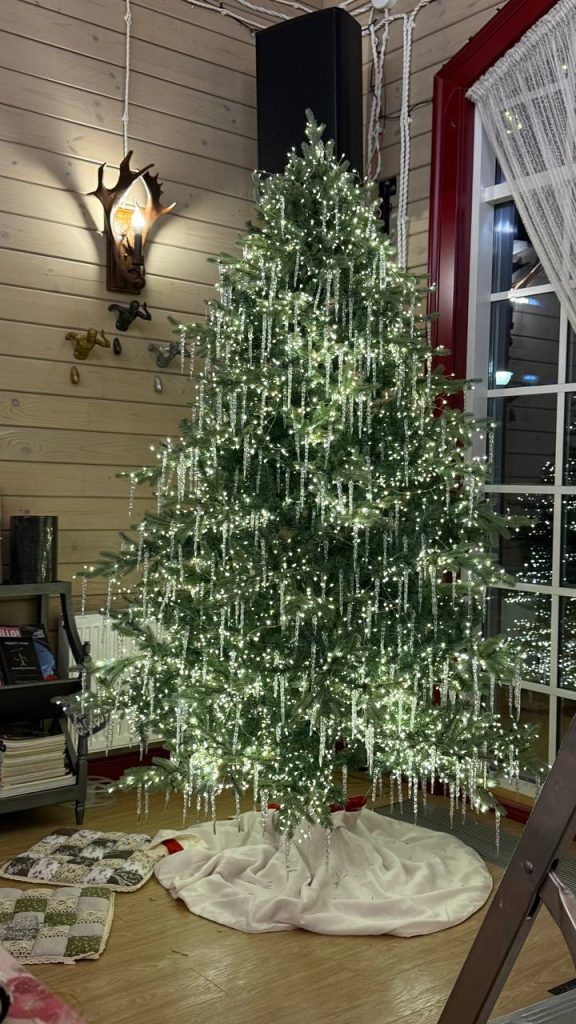 В одном из проектов Юлия буквально «мотала» ёлку целых 11 часов, используя 900 метров «росы» и 700 сосулек (что потребовало ещё примерно 6 часов работы). Позже команда приняла волевое решение хранить украшенное дерево целиком, чтобы сократить время работы в дальнейшем. Ещё одну ледяную зелёную королеву команда установила в одной из загородных баз отдыха.