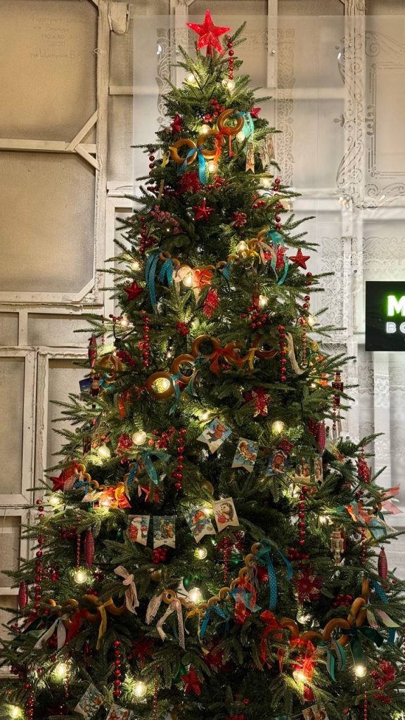 Самый мощный тренд этого года — возврат к русским корням в оформлении ёлок. На ветках появляются сушки, баранки и даже конфеты, которые вешают рядом с винтажными советскими игрушками, яркими флажками и деревянными петушками на палочках. Красные звёзды украшают макушку, а красный цвет доминирует в общей палитре оформления.