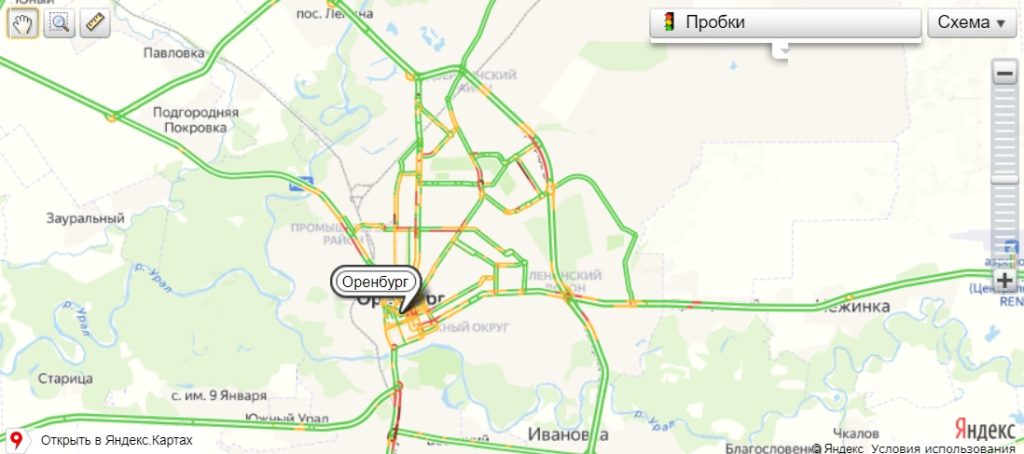 Традиционно сложная ситуация складывается в центре Оренбурга и на основных городских магистралях. По данным сервиса «Яндекс пробки в Оренбурге онлайн» на 8 часов утра, в пробках стоят улицы 8 марта, Чкалова, Максима Горького, Краснознамённая, Володарского и Маршала Жукова.