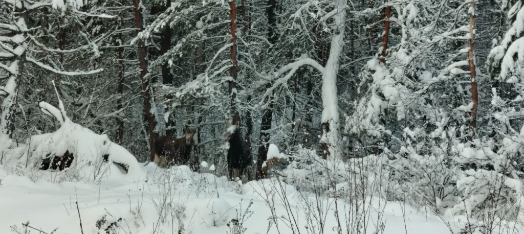 При этом крупных копытных можно не заметить, даже если вы находитесь совсем близко к ним. Лоси укладываются в снег таким образом, что становятся почти незаметными.