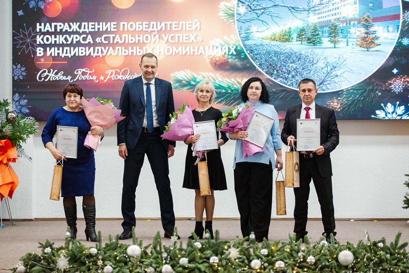 Исполнительный директор управляющей компании «Уральская Сталь» Сергей Готванский отметил, что с надёжным коллективом комбината преодолимы все трудности, а затем вручил Почетные грамоты Министерства промышленности и торговли РФ семёрке передовиков, а также корпоративные Почётные грамоты победителям конкурса «Стальной успех» в индивидуальных номинациях.