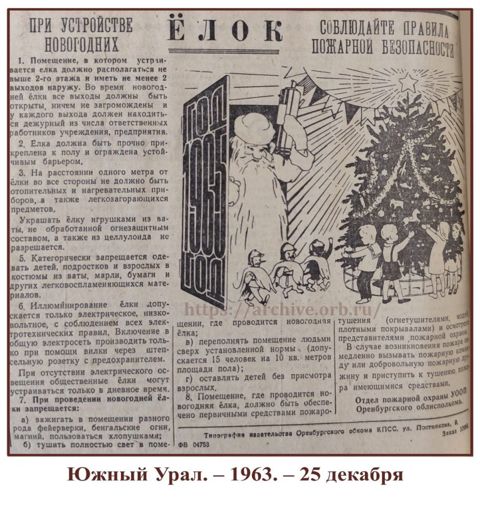 Красиво наряженная ёлка — неотъемлемая часть праздника и в XIX, и в XX, и в XXI веке. В советское время перед Новым годом оренбургская газета «Южный Урал» призывала читателей покупать ели только в государственных и кооперативных организациях и проявить солидарность в защите хвойных деревьев от неконтролируемой вырубки.