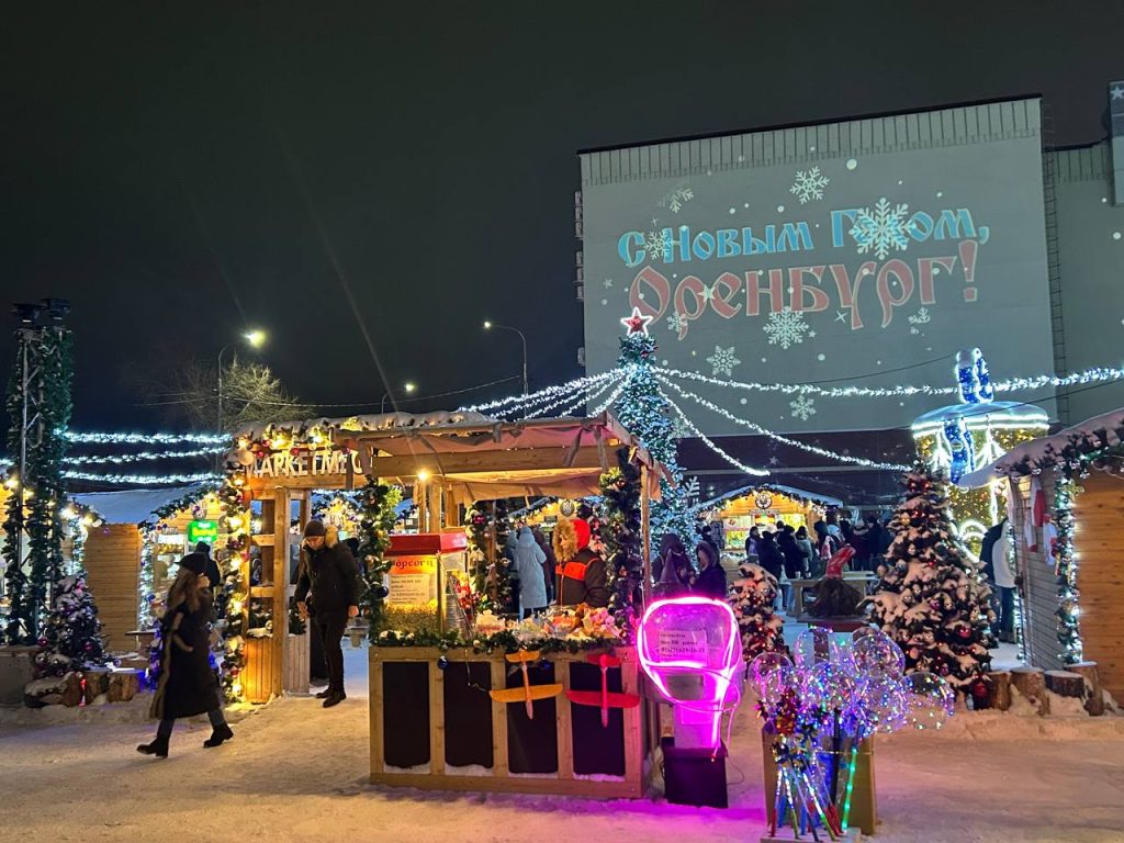 Домики маркета еды наполнены вкусным содержимым, чтобы порадовать оренбуржцев. Фотозоны, в том числе светящийся тоннель из цифр, «Звёздное небо» с новогодними шарами и снежинками, идеально подойдут для памятных снимков.