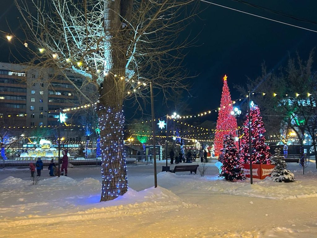 Еще два дня жители областного центра смогут развлекаться в новогоднем городке. Там работают большой фудкорт, каток, установлены елки и фотолокации.