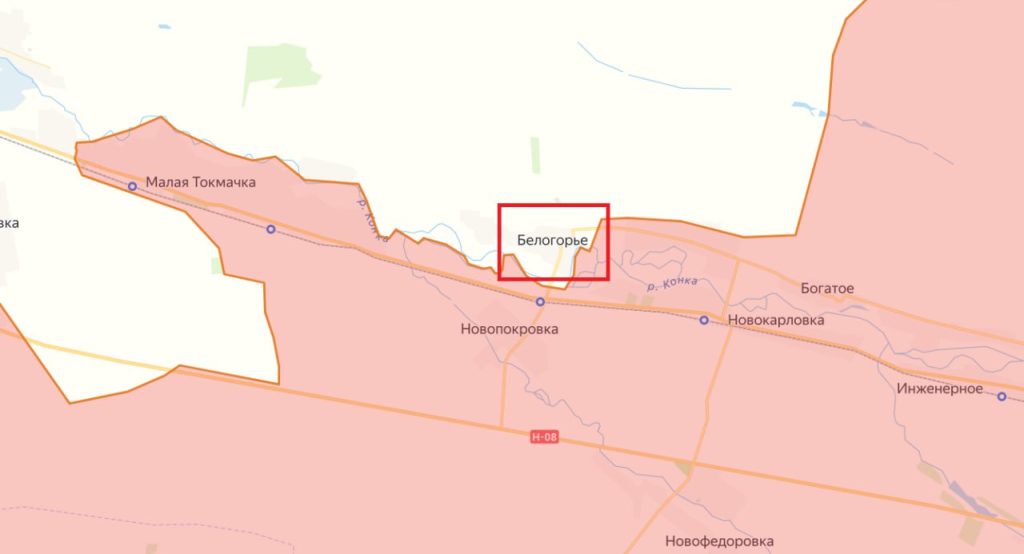Белогорье — населенный пункт в районе Малой Токмачки. Поселок находится в Ореховском районе Запорожской области. Ранее на этой неделе Вооруженные силы России освободили населенный пункт Зеленое Запорожской области.