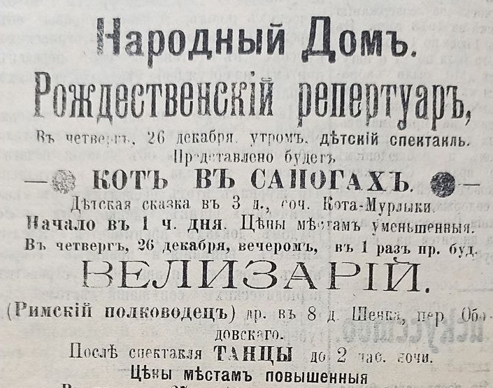 В Народном доме находились библиотека-читальня, чайная с буфетом без спиртных напитков и любительский Народный театр. В последние дни 1913 года гостей Народного дома ждал специальный рождественский репертуар: спектакли, танцы, а также маскарад. Кстати, в афише сразу отмечалось, что на некоторые мероприятия цены повышенные.