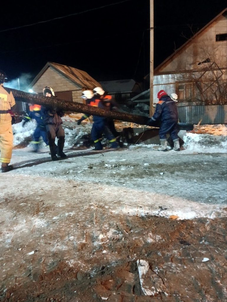 Сотрудники Оренбургской областной АСС прибыли на место на двух аварийно-спасательных автомобилях, оснащённых спецоборудованием. Установив световой столб, они приступили к разбору завалов.