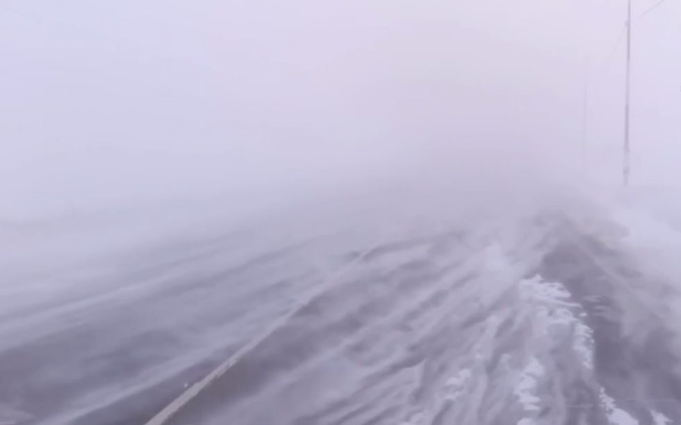 На востоке Оренбуржья наблюдается сильный боково ветер и низовая метель. Видимость на трассе Оренбург-Орск практически нулевая.