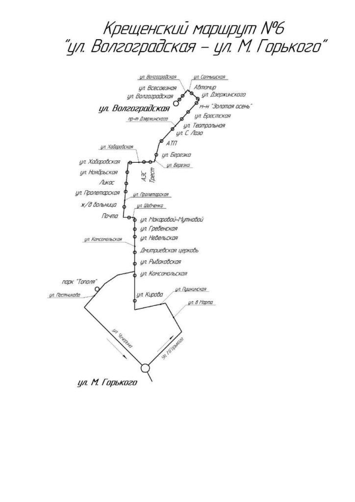 «Крещенские» маршруты будут обслуживать автобусы №2, 6, 10, 21 и 65Н. Они будут  отправляться с конечных остановок  — №2 «РТИ»,  №6 «ул. Волгоградская», №21 «10 микрорайон», №21 «24 микрорайон», №10 «пос. Карачи», №65н «ТК «Медовый» в 21.00, 21.30 , 22.00, 22.30, 23.00, 23.30. Следующая конечная остановка – улица Максима Горького.
