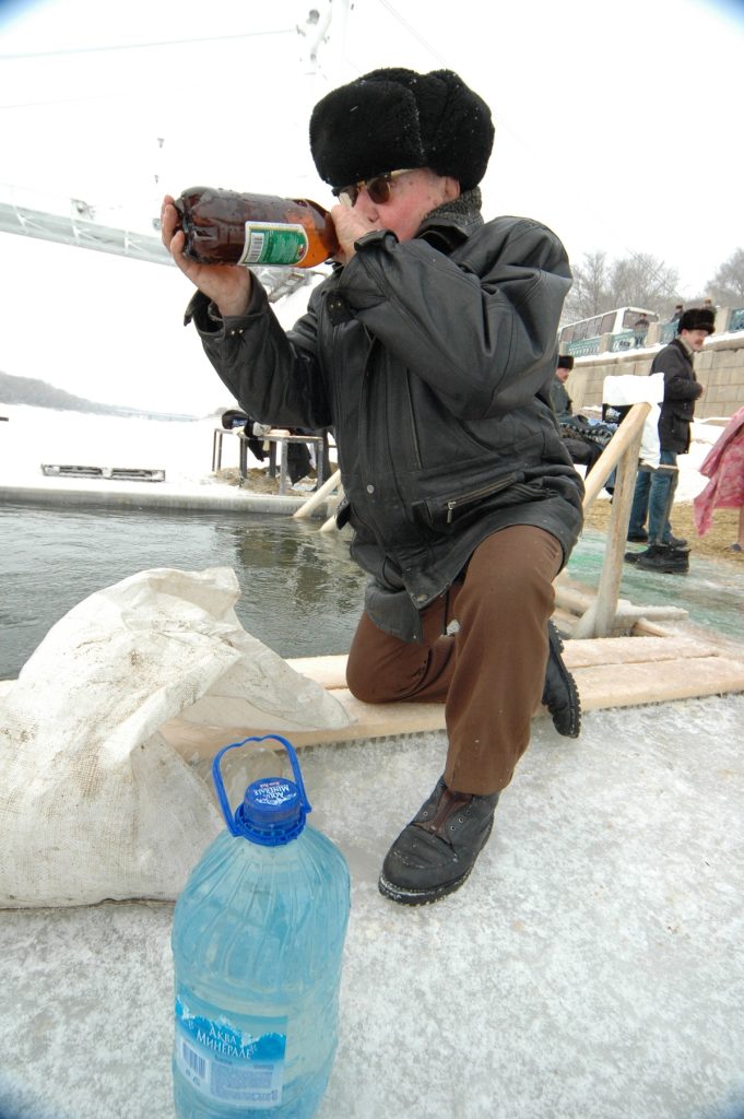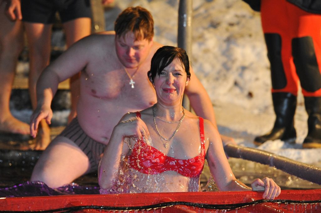 И возникает у меня с этим праздником некий диссонанс. С одной стороны, если смотреть вглубь, то вот Иордан, вот Иисус, вошедший в его воды, и Святой дух слетает с небес в образе белого голубя. Чудо. История. Тайна. А с другой стороны — русская удаль с хохотом и плясками возле проруби. С извечным: «Ух! Отличная водица!» Это ещё хорошо, что народ перестал принимать на грудь до и после — сказалась всё-таки статистика смертности. И, как ни печально, в этот день кого-то обязательно уносит под лёд. Даст Бог, чтобы обошлось сегодня. То есть особого Богоявления (второе название праздника) я тут не вижу — теряется он на фоне моржевания и некой цыганщины.