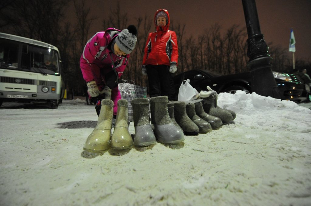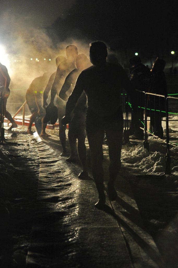 Снимать в этот праздник я люблю, несмотря на морозы. Правда, ночью картинка получается мрачная — чёрная вода, белый лёд, молчащие тёмные деревья вокруг реки. Народа много, и кто во что горазд. Тут вам и растаманы в дредах, и православные афроамериканцы, и девушки в бикини, что будто пришли позировать для календаря. Но стоит только пробиться солнцу — как никуда не деться от ощущения чистоты. И ты почти знаешь, что сейчас спустится с неба белая птица. Та самая. Нет толпы, остались только кем-то потерянно-забытые тапки, полотенца, бельё. Чудеса любят тишину. По себе знаю.