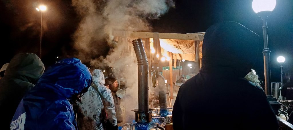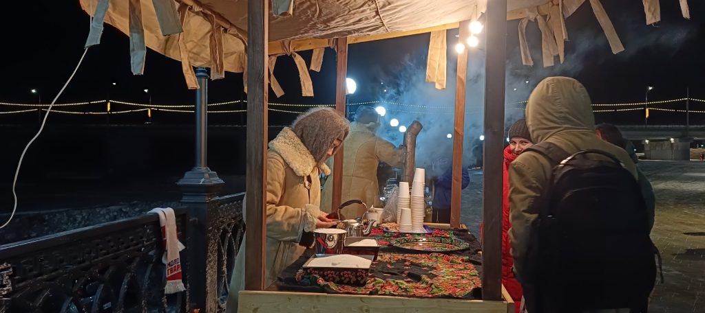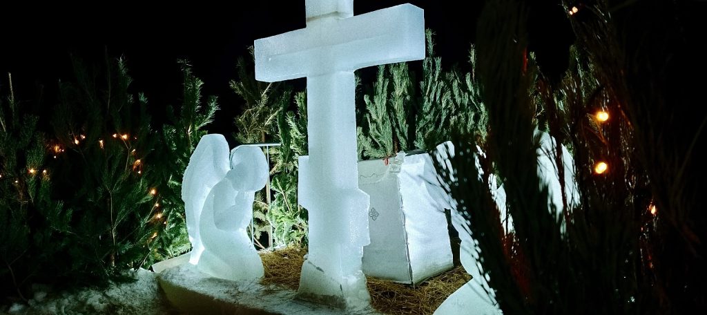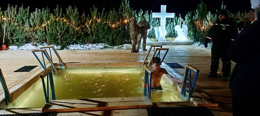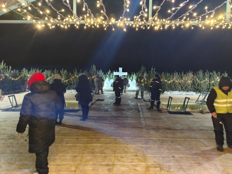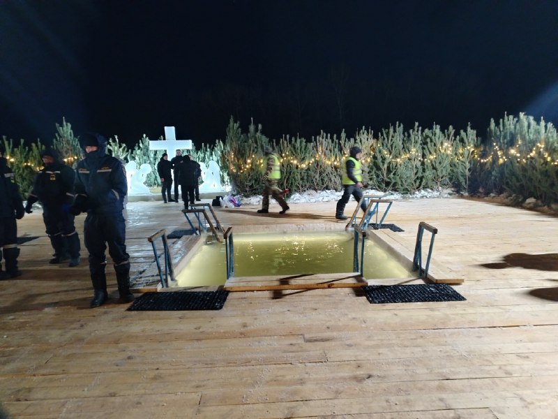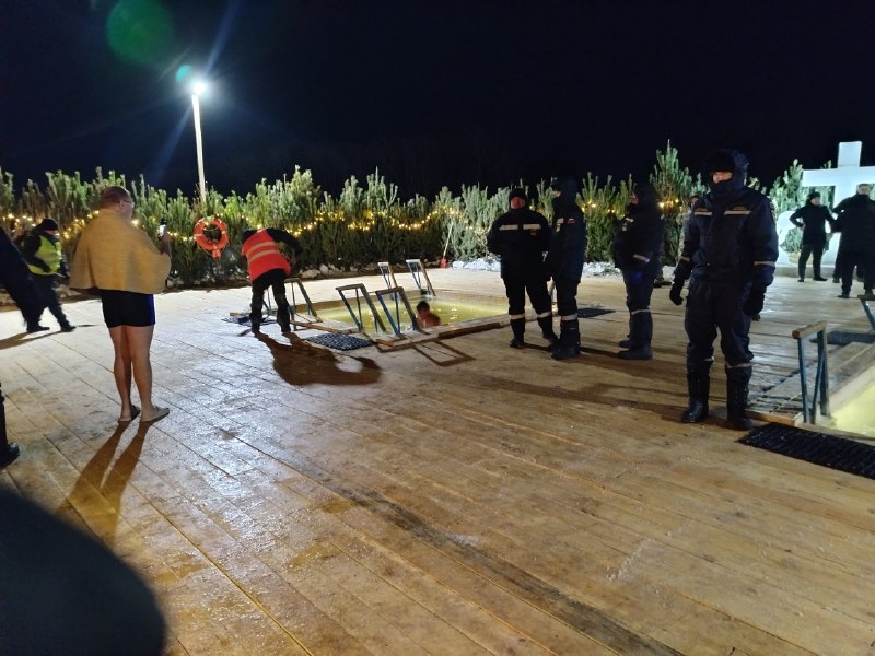 Для купания оборудованы две иордани. Организаторы обустроили спуск к воде со ступенями и перилами, обеспечив также отапливаемые палатки для переодевания.