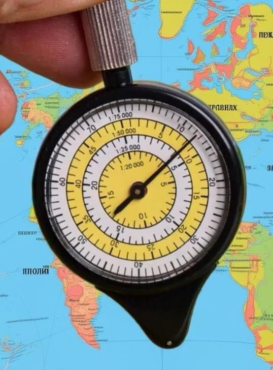 Прибор предназначен для расчета длины кривых линий на картах: его колесико прокатывают по маршруту, и стрелка на шкале отображает дистанцию.