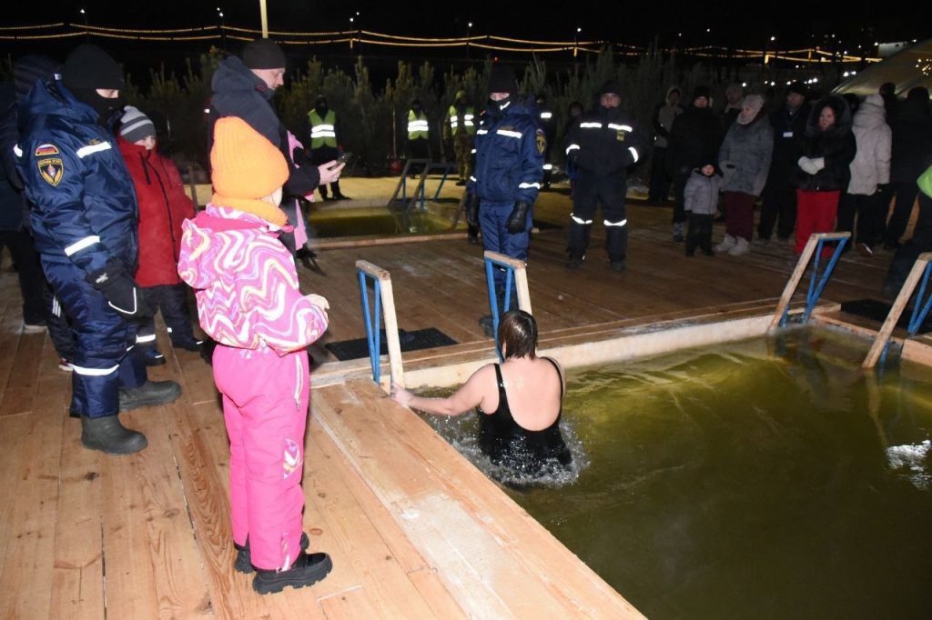 Для посетителей купели создали максимально комфортные условия. Подготовили две купели, установили спуски, теплые палатки. За порядком и безопасностью следили полицейские, спасатели и медики.