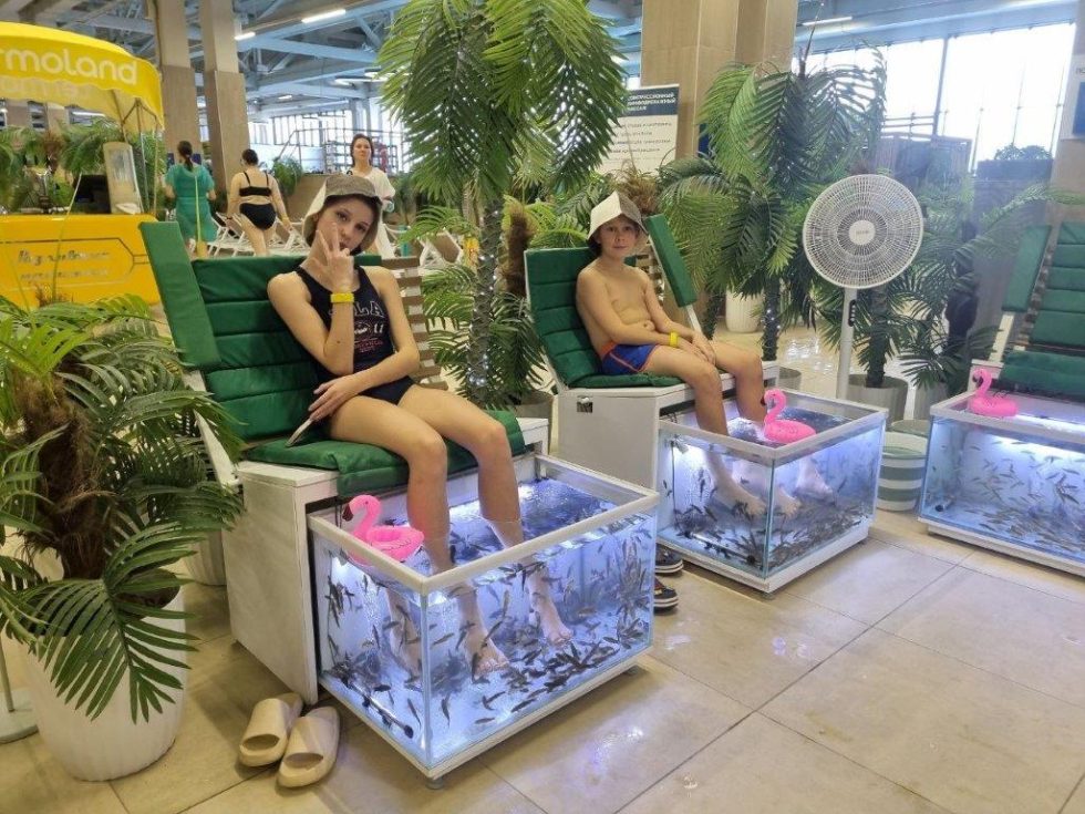 Сорок человек – в основном, родители с детьми – провели субботний день в оздоровительных процедурах и развлечениях на воде. В течение четырех часов отдыхающие посещали разнообразные сауны, бассейны, в том числе под открытым небом, спа-, спорт- и фудзоны, были участниками развлекательных программ.