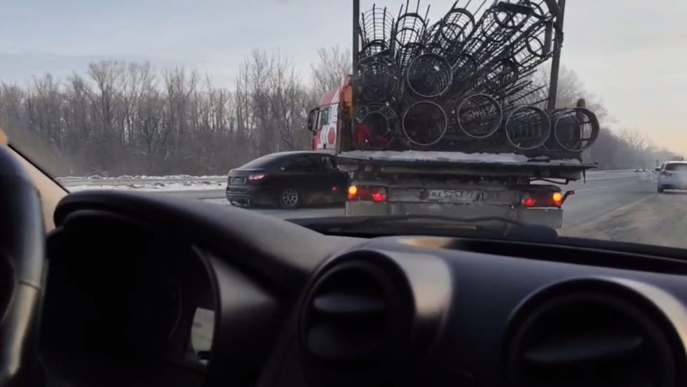 В Оренбургском районе участок федеральной трассы не поделили грузовик и легковой автомобиль. «Лада» буквально въехала под прицеп с металлической арматурой.