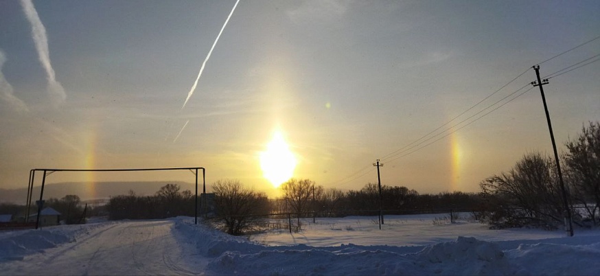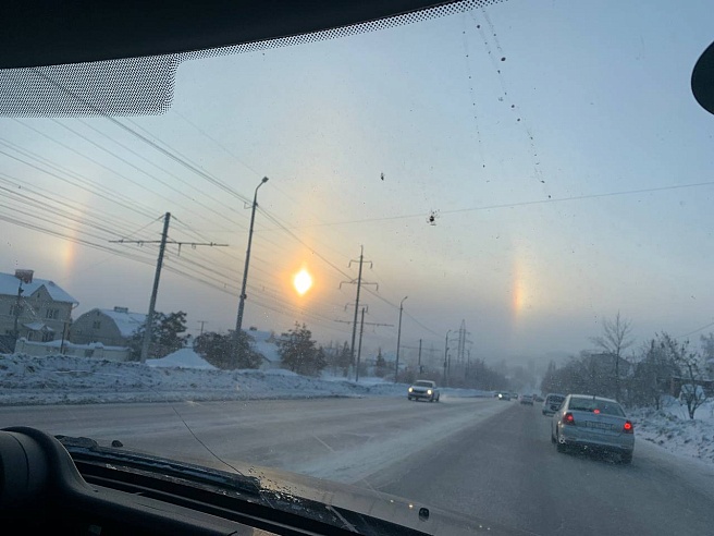 Характерное светящееся кольцо вокруг солнца и цветные пятна по его сторонам были видны в Ленинском, Заводском, Волжском и Кировском районах города, а также в Хвалынском районе области, сообщает телеканал «Саратов 24».
