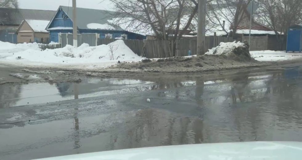 В Южной части Оренбурга из-под канализационного люка бьет фонтан воды. Он затопил сразу две улицы.