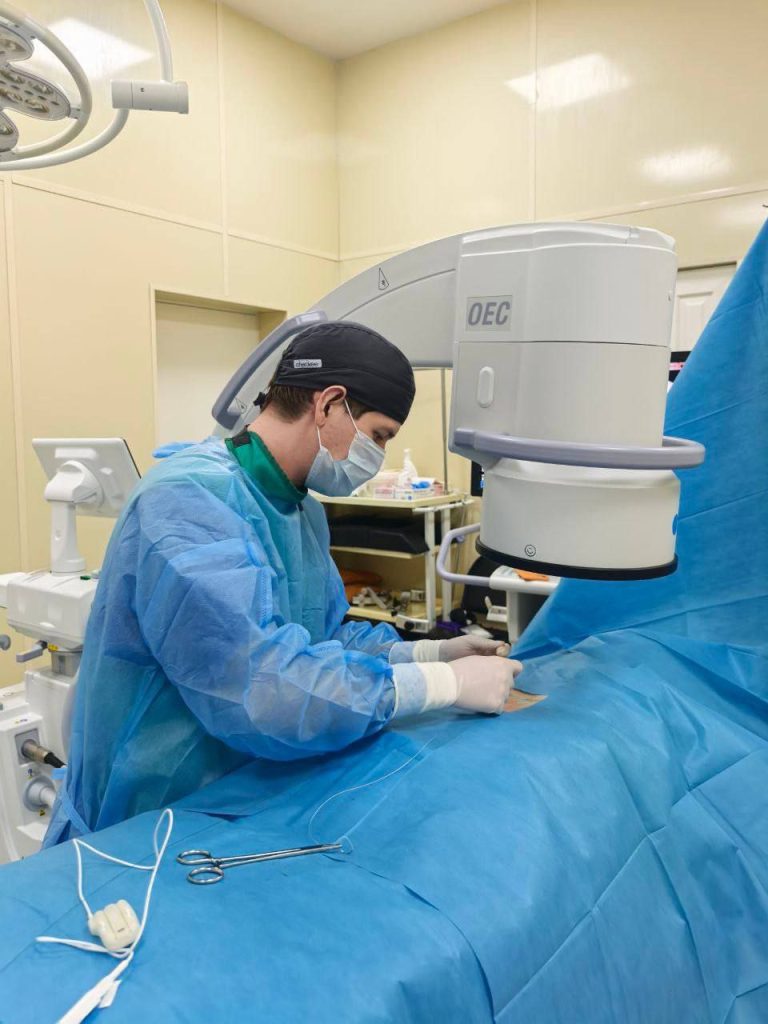 После установки электродов генератор имплантируется под кожу. Это устройство остаётся с пациентом на всю жизнь, обеспечивая постоянную стимуляцию и контроль болевого синдрома, – рассказал заведующий нейрохирургическим отделением ООКБ им. В.И. Войнова Дмитрий Тюняев.