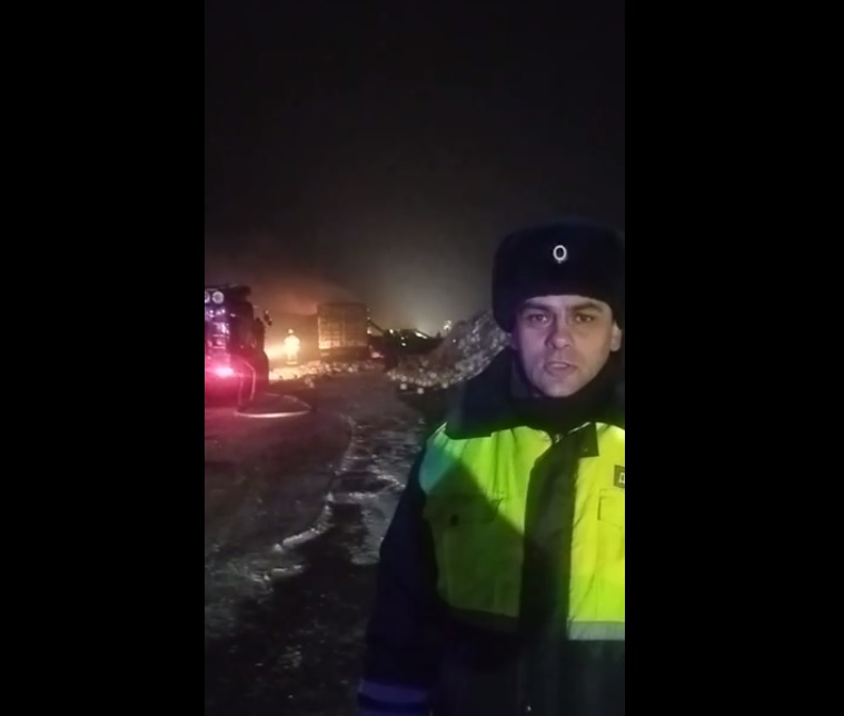 На месте происшествия работали оперативные службы. Большегрузы горели открытым пламенем. Инспекторы ГИБДД опубликовали видео с места ДТП.