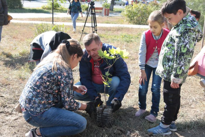 Силами работников Уральской Стали (входит в компанию «Металлоинвест») и других активных жителей города Новотроицк в сквере имени Юрия Гагарина высажена аллея из 75 саженцев.