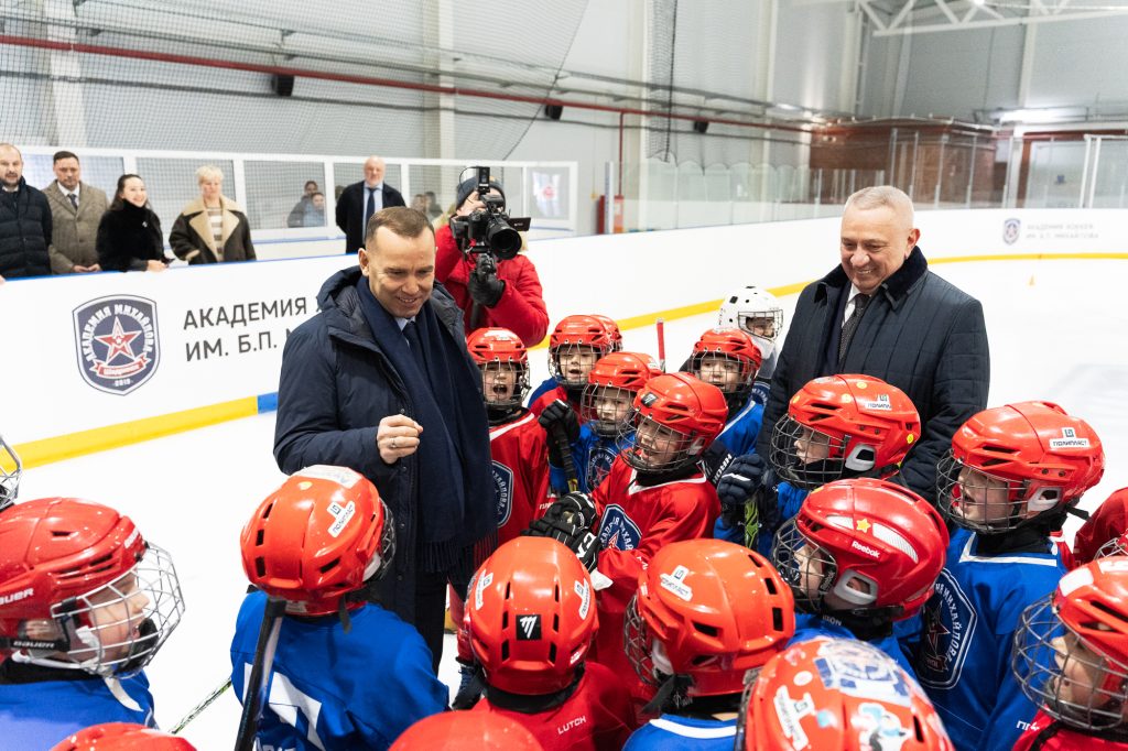 Официальная часть празднования началась с посещения Ледовой арены. Почетные гости посетили тренировку воспитанников академии хоккея им. Б.П. Михайлова, пообщались с юными хоккеистами и их родителями. В настоящее время в Академии занимаются более 150 воспитанников.