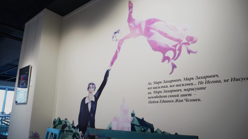 Экспозиция собрала три знаковые серии Марка Шагала: литографии «Библия» и «За зеркалом», а также офорты «И на земле», плюс две авторские книги. Все экспонаты предоставила петербургская Bashmakov Gallery — владелец крупнейшей частной коллекции графики Шагала в мире. Коллекционер Павел Башмаков лично курировал проект, чтобы не просто показать работы, а раскрыть историю творчества мастера.